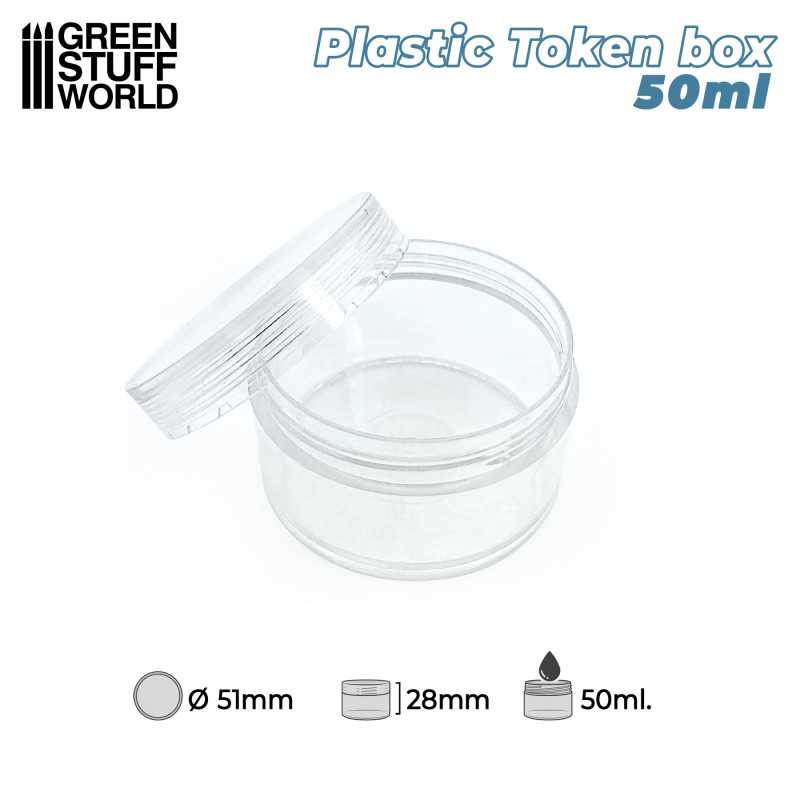 A plastic token jar is a small container designed to store and organise tokens used in board games.