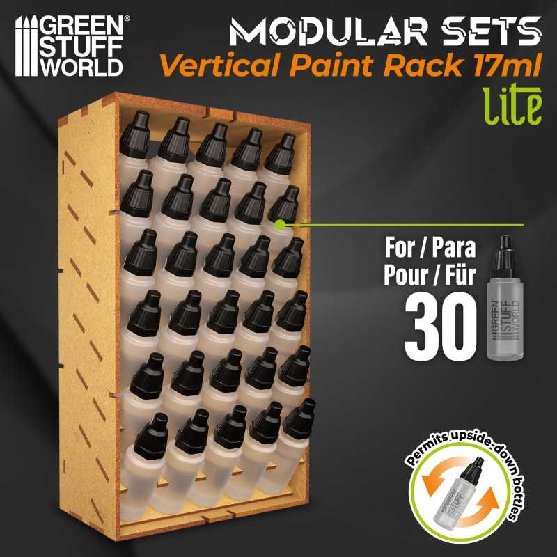 Modular vertical paint organiser made from high-quality MDF, designed to maximise storage space. Several modules can be combined horizontally and vertically to extend the display area. Supplied unassembled, it is very easy to assemble, with the use of white glue recommended for extra strength.