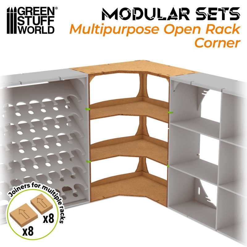 Multifunctional open shelving in MDF, ideal for use with our paint organisation modules. We recommend using white glue to ensure a solid structure.