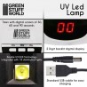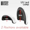 Arc-shaped fixed UV curing machine with a front opening, designed to cure UV resin in several directions simultaneously, using combined UV light and LED technology. Each light source in the unit is fitted with 2 small bulbs emitting two frequencies of ultraviolet light. The UV wavelengths are 395 and 405 nm (UV-A).