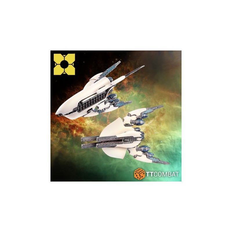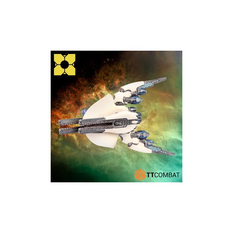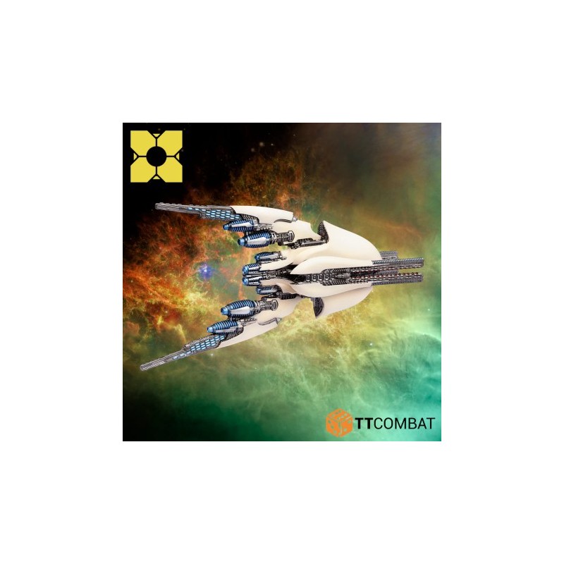 The Agrippa, on the other hand, is an atypical ship. Its offensive capabilities are modest, but it deploys holographic drones in a defensive role, capable of generating debris fields that disrupt enemy movements and the targeting of their weapons, offering protection to allied formations.