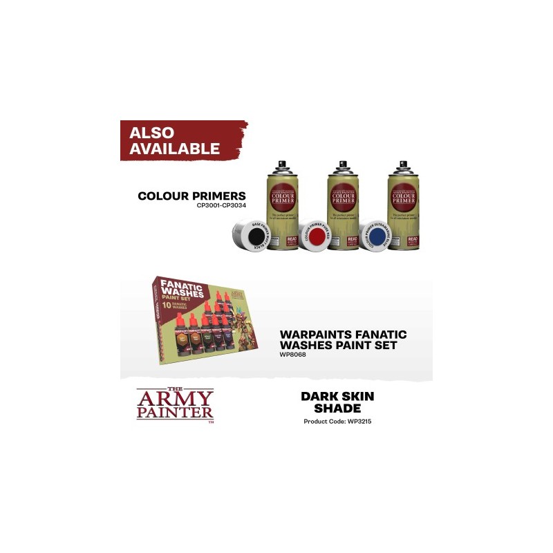 Warpaints Fanatic Wash: Dark Skin Shade is a deep reddish-brown wash designed to shade and accentuate details on your miniatures.