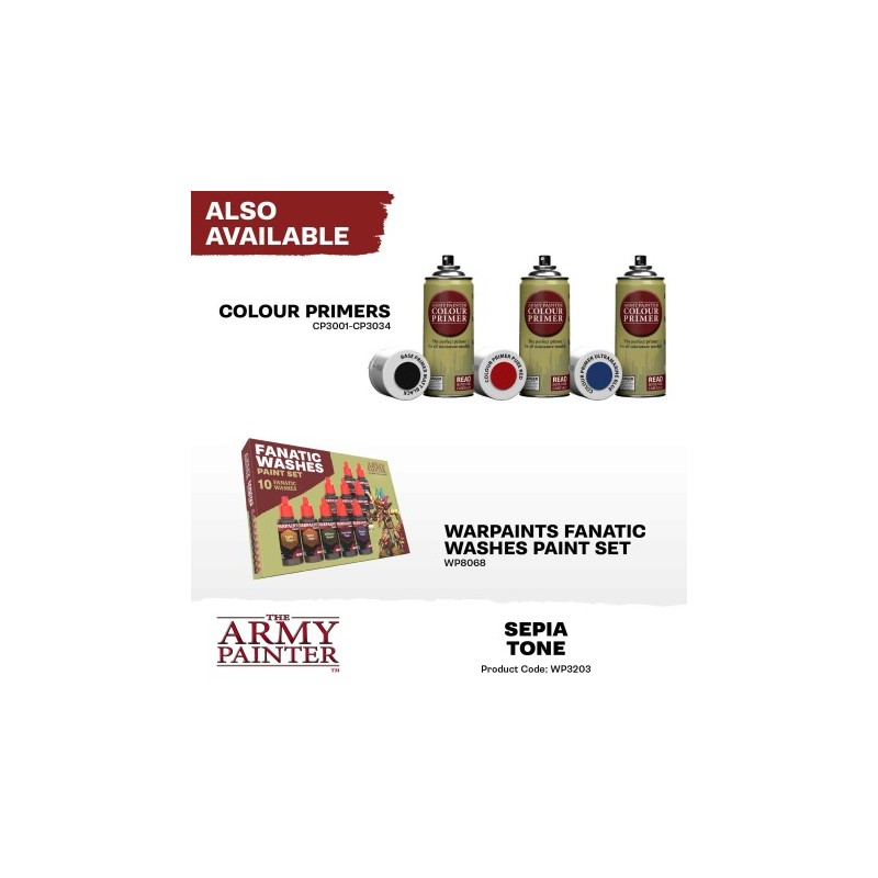 Warpaints Fanatic Wash: Sepia Tone is a sepia wash designed to accentuate shadows and enhance details in your miniatures.