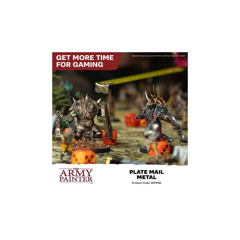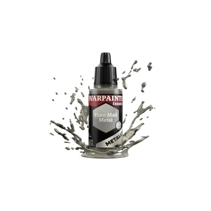 Warpaints Fanatic Metallic: Plate Mail Metal is a gray metallic, formulated with our proprietary blend of aluminum and mica for optimal coverage and exceptional shine.