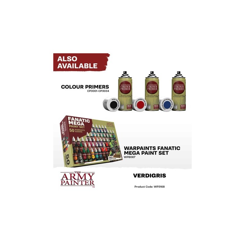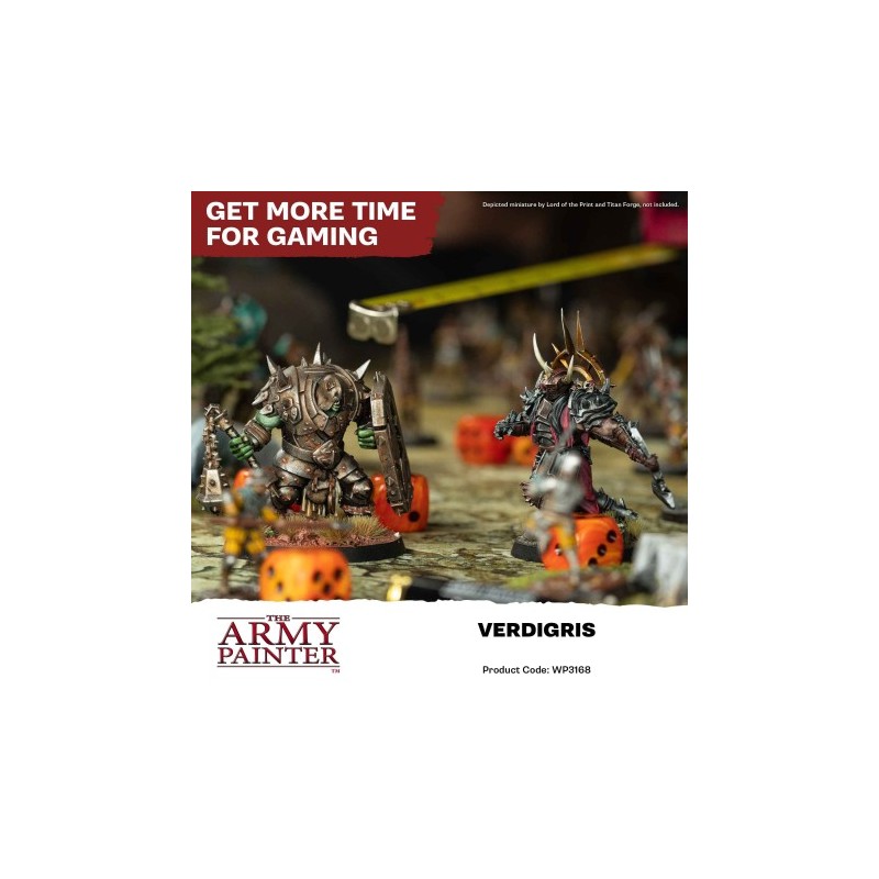 The Warpaints Fanatic Effects : Verdigris is a matt paint that creates a greenish patina effect, enriched with small particles to provide a realistic texture.
