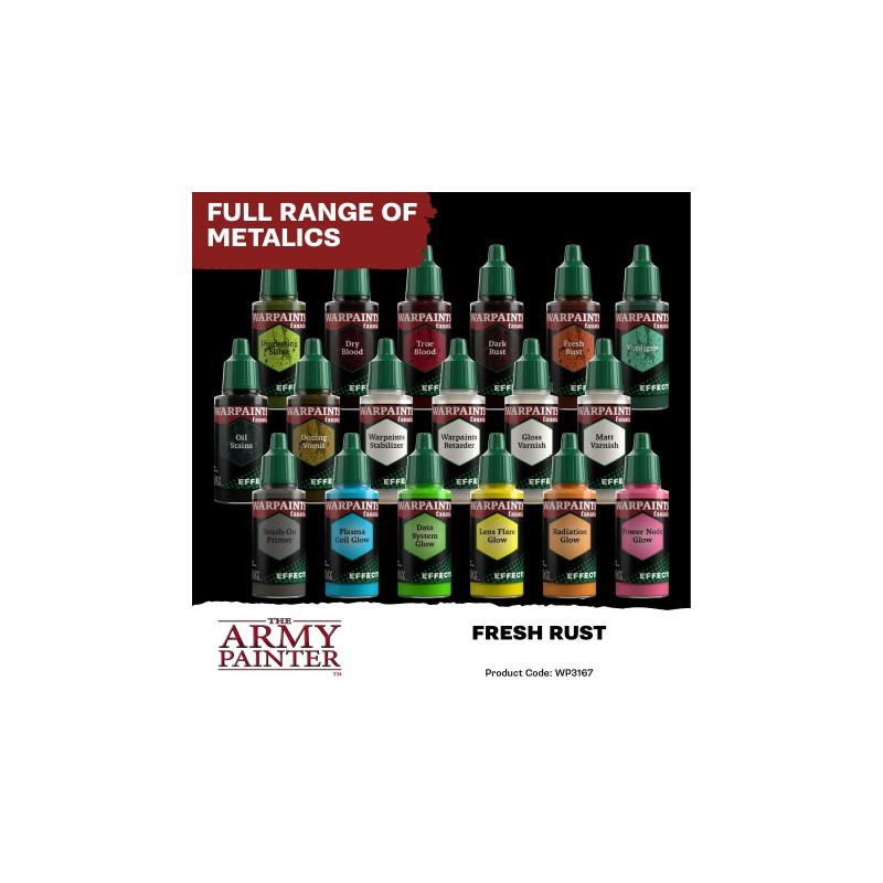The Warpaints Fanatic Effects: Fresh Rust is a fresh rusty orange paint that dries matt and contains small particles for a realistic textured effect.