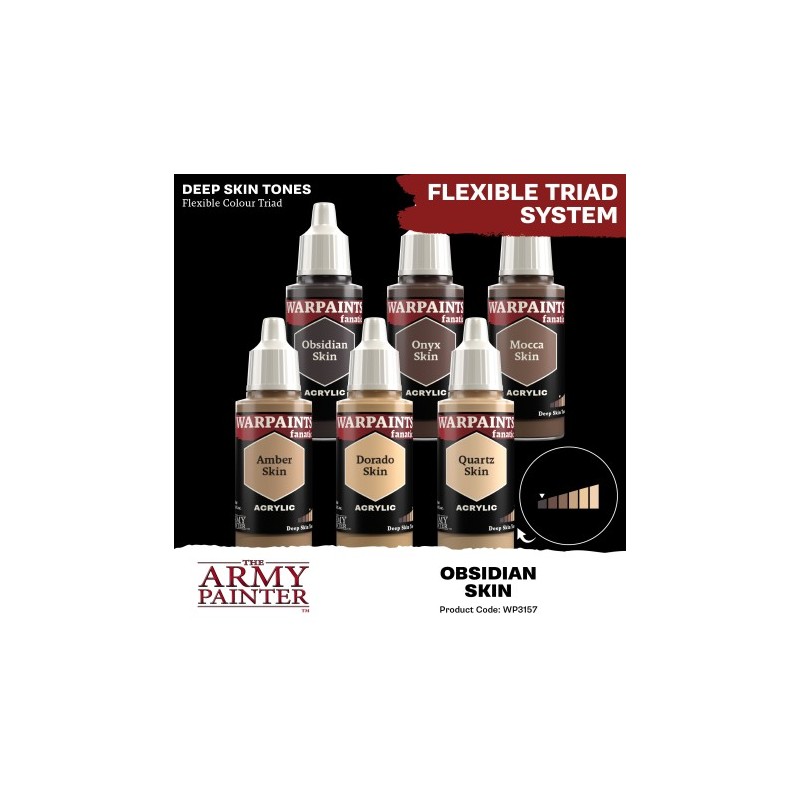 The Warpaints Fanatic: Obsidian Skin is a brownish black, perfect for deep skin tones and other applications. It is the darkest shade in the ‘Deep Skin Tones’ Flexible Colour triad, and its practical name is ‘Brownish Black’.