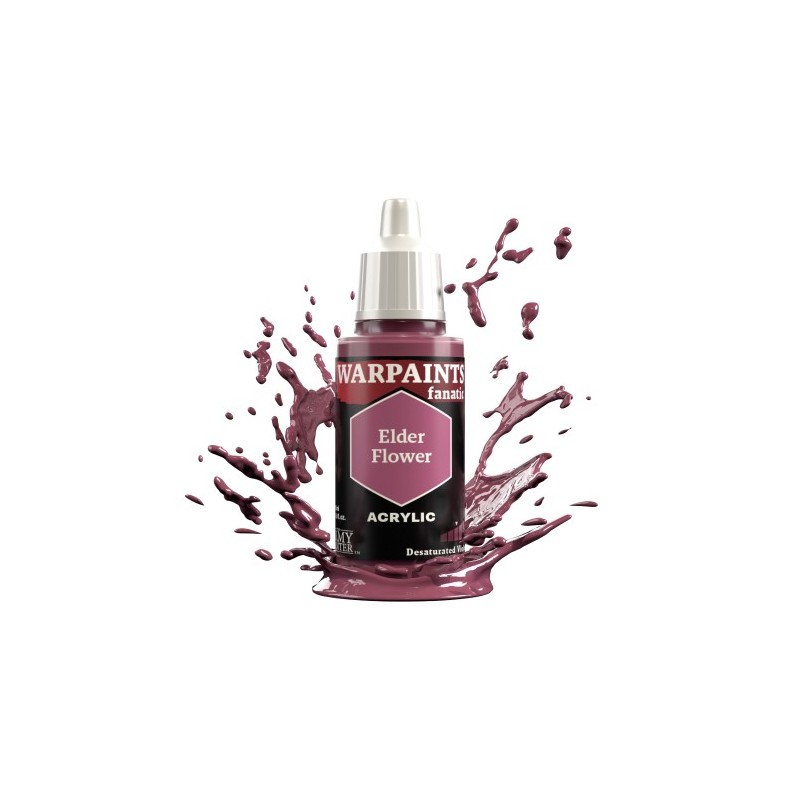 Fanatic Warpaints: Elder Flower is a mid-tone purplish red belonging to the family of desaturated violets. It is one of the two intermediate shades in the ‘Desaturated Violets’ flexible colour triad, and its practical name is ‘Violet Red’.