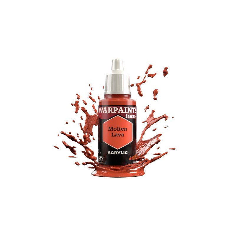 The Warpaints Fanatic: Molten Lava is a bold reddish-orange, perfect as a highlight for reds or as a base tone for oranges. It is the deepest shade in the "Oranges" Flexible Colour Triad and is identified by its Practical Colour Name, "Strong Reddish Orange."