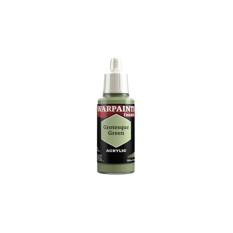 The Warpaints Fanatic: Grotesque Green is a very pale olive, ideal for brightening up dull or olive greens. It is the lightest shade in the ‘Olive Greens’ triad of flexible colours. Its practical name is ‘Very Pale Olive’.