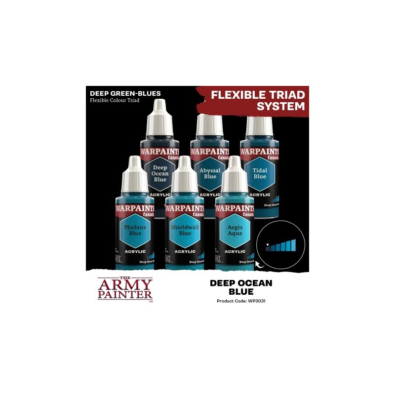 The Warpaints Fanatic: Deep Ocean Blue is a deep greenish blue, accentuated by black undertones that make it an ideal base colour. It is the darkest shade in the flexible triad of ‘Deep Ocean Blue’ colours, and is conveniently called ‘Black Ocean Blue’.