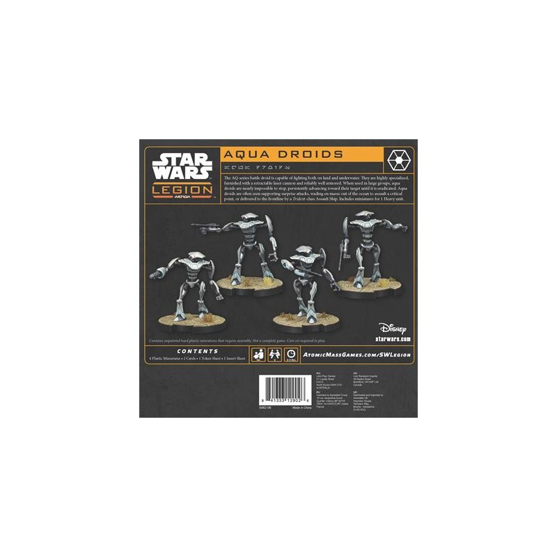 This expansion for Star Wars™: Legion includes 4 finely sculpted Aqua Droid figures, making up a heavy unit, as well as unit and upgrade cards to ensure their effectiveness in aquatic environments.
