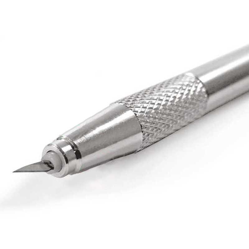 Professional knife with swivel head, ideal for hobbies, scrapbooking, model-building and other craft projects. Designed with metal components for maximum durability. This knife is specially designed for freehand curved cuts, with a 360° rotating blade. It's perfect for cutting stencils, circles and curves.
