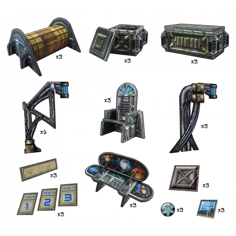 This box contains everything you need to create a multi-level game board, covering an area of up to 22″ x 30″ (559mm x 762mm) or more, and designed to fit all 28-35mm sci-fi games, set in a dark and devastated universe.