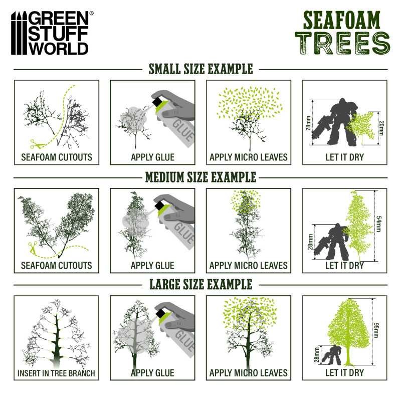 - Creating miniature trees: Seafoam branches can be shaped and painted to represent a wide variety of trees, from fir trees to palm trees.