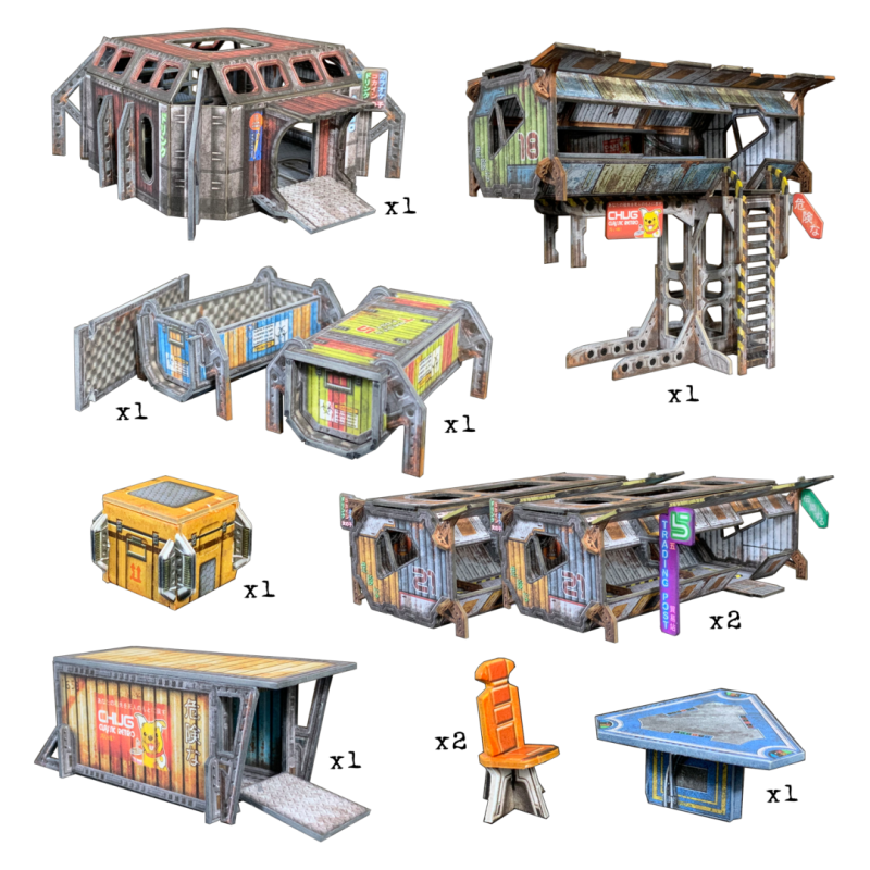 This box contains everything you need to build a multi-level game board, covering an area of up to 2′ x 2′ (600 mm x 600 mm) or more, perfect for all 28-35 mm sci-fi games, in an isolated makeshift outpost. All parts are modular and can be assembled according to your preferences, allowing a different configuration with each new game. The set can be enhanced with other kits from the Battle Systems range, and is fully compatible with Alien Catacombs and other Core Space: First Born expansions.
