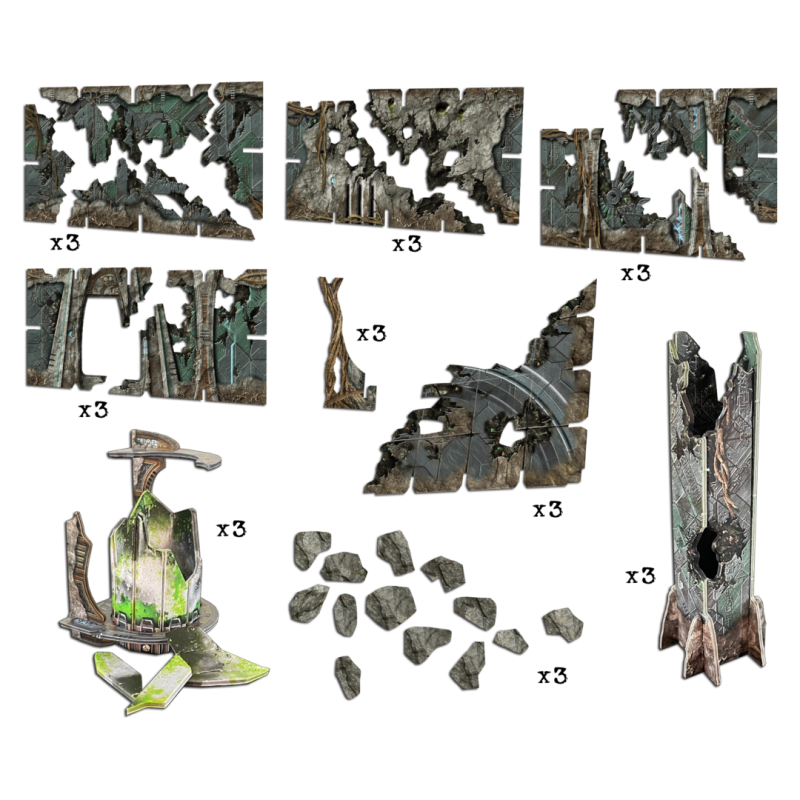 The terrain is delivered flat, on high-quality, high-density cards printed in full color on both sides. No painting required! The terrain must be assembled, and some small parts require glue.