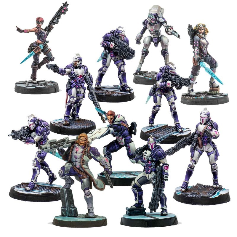 Aleph is the central artificial intelligence of the Human Sphere in the Infinity universe, managing data networks and ensuring the stability of human societies. Although officially benevolent, some perceive it as an omnipresent and potentially threatening force. Its armed forces, made up of advanced units and recreations inspired by historical figures, act to preserve order. It is the sworn enemy of the Combined Army, which seeks to destroy its influence. Aleph embodies a delicate balance between protection and absolute control.