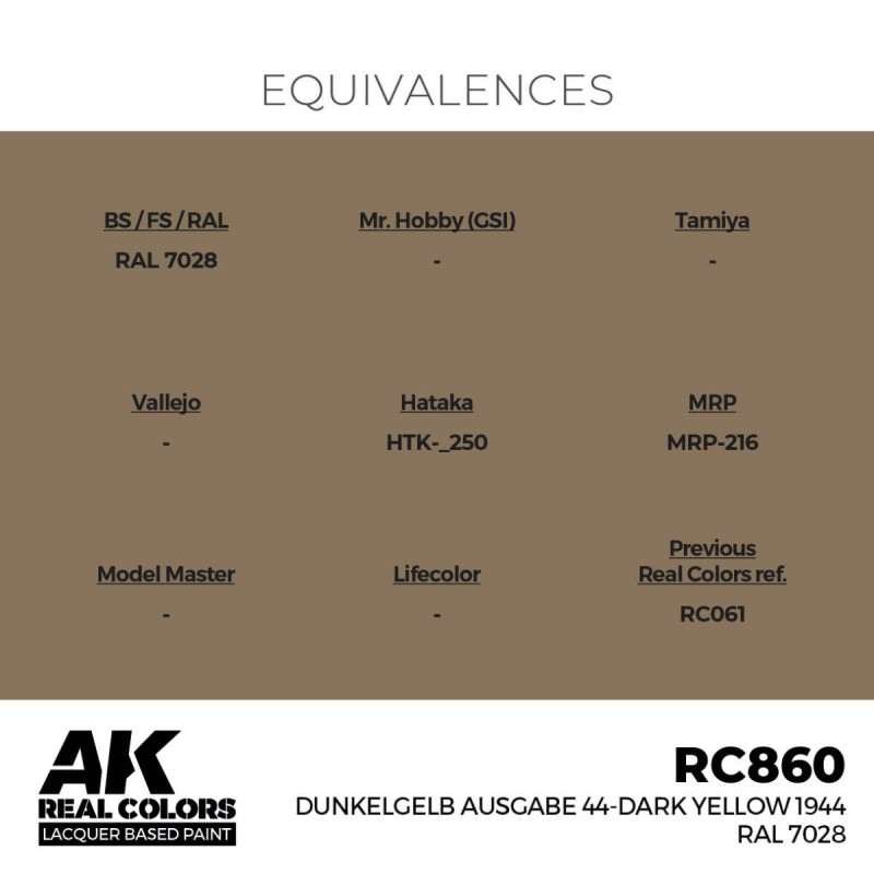 This shade is a darker variant of RAL 7028 Dunkelgelb, introduced in September 1944, and used on late-war German armored vehicles. For optimal results, it is recommended to dilute with RC701/RC702 High Compatibility Thinner or other thinners designed for lacquer-based paints.