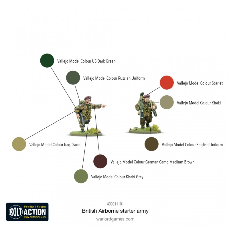 Step into history with this exclusive box set, allowing you to build a 1,000-point British Airborne Army. Inspired by the fearless "Red Devils," these soldiers, equipped with Sten and Bren Guns, embody courage and determination. This set includes a variety of elite units, such as paratrooper sections, a mortar team, a QF 6-pounder anti-tank gun, and more, offering a strategic and immersive gaming experience.