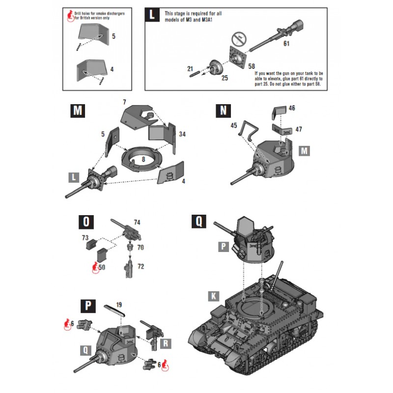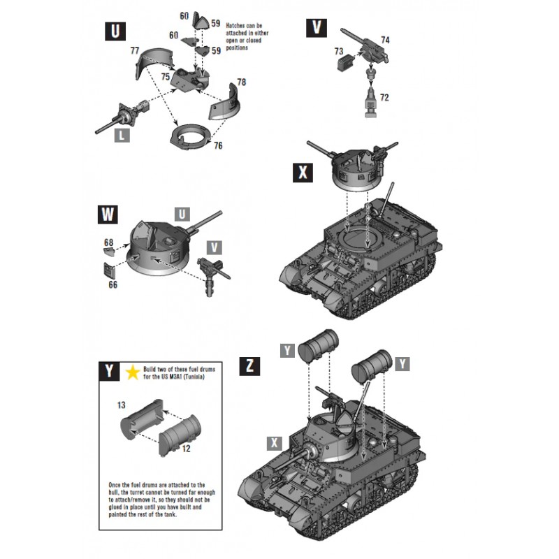 During 1942, the British Army decided to keep their Stuarts away from tank-versus-tank combat and instead use them for reconnaissance. A number of Stuart variations arose, including the Stuart Recce, the Stuart Kangaroo and the Stuart Command. Making a conversion of these is easy with the new plastic Stuart. The Recce had the turret removed in order to achieve an improved speed and range, while the Kangaroo had been converted into an armoured personnel carrier.