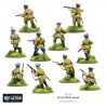 This 10-figure metal set accurately depicts Soviet NKVD troops and can also be painted to represent Border Guard units, recognizable by their iconic green caps. The set includes one NCO with a submachine gun, four soldiers with SMGs, three with rifles, and a two-man light machine gun team. Plastic bases are included. This set is perfect for collectors or tabletop wargamers looking to expand their Soviet forces with unique and historically significant figures.