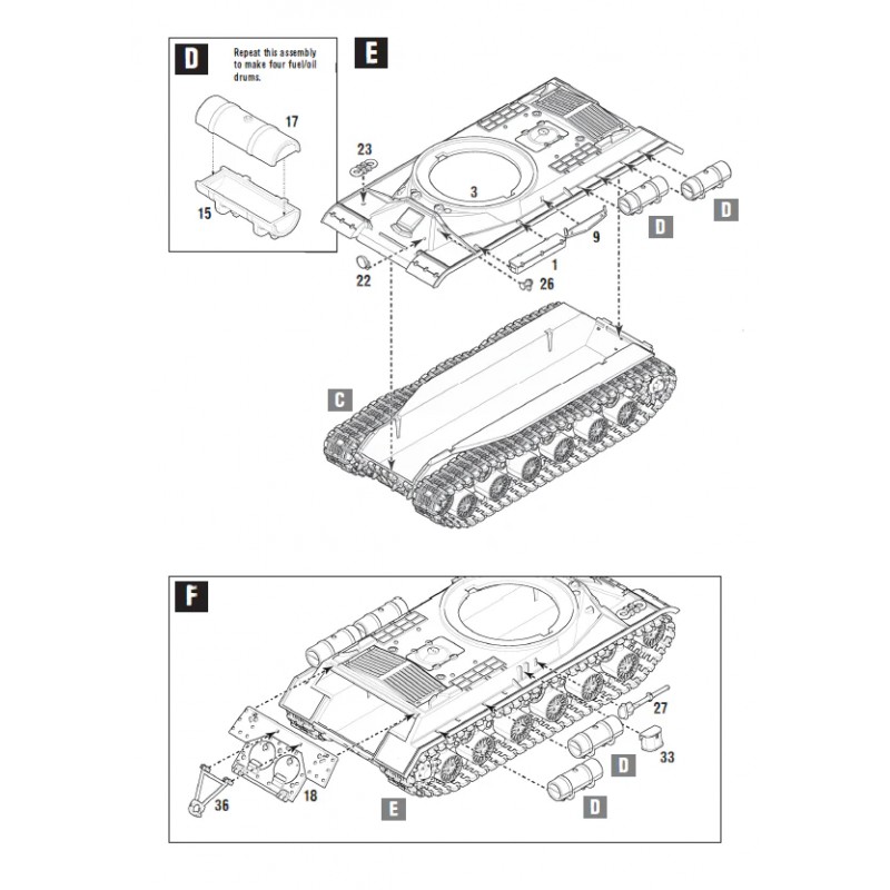 This box includes all the components needed to build a 1/56th scale plastic IS-2 heavy tank, along with an 8-man infantry squad that can be used either as regular troops or mounted tank riders. It also contains a detailed assembly booklet, full-colour waterslide decals, a stat card for in-game reference, and a set of damage markers to enhance the realism of your matches. Models come unassembled and unpainted, offering a rewarding hobby experience for players and collectors alike.
