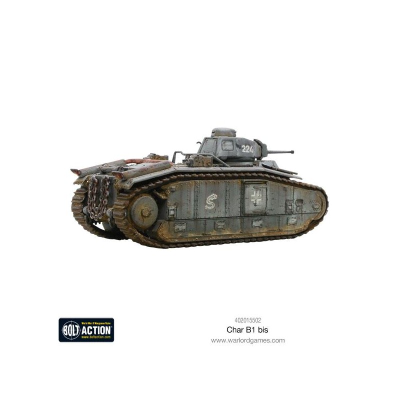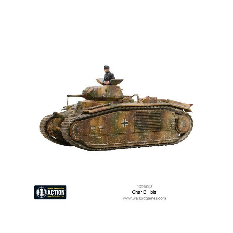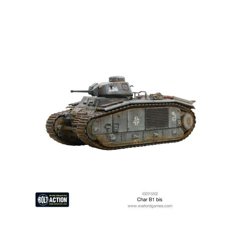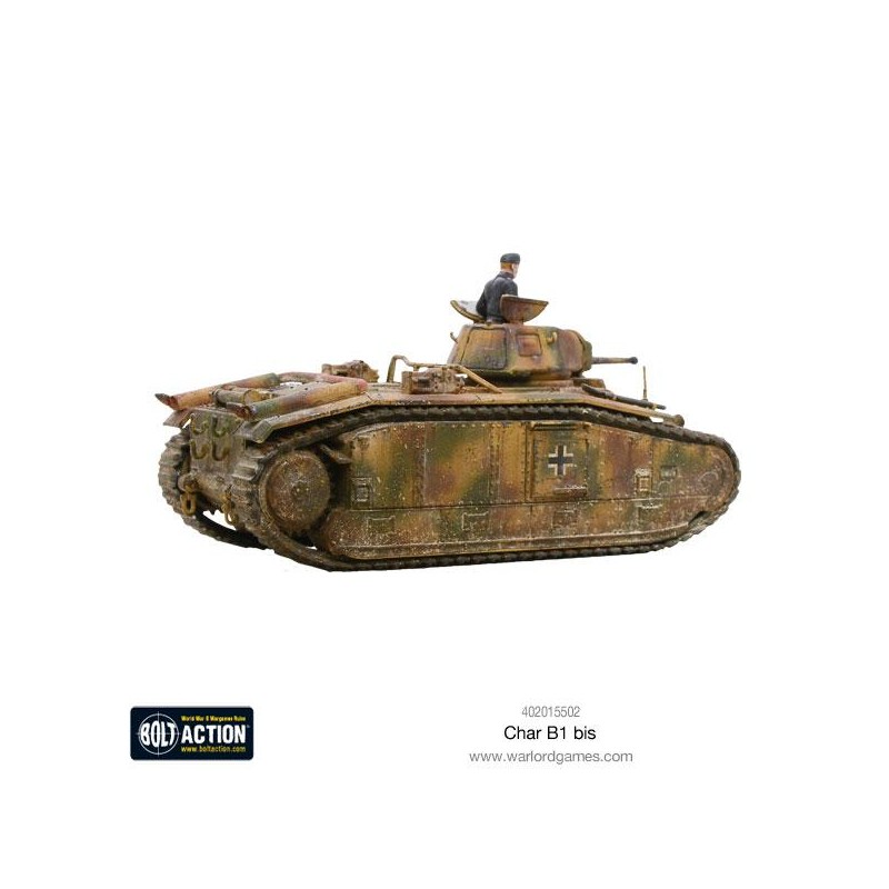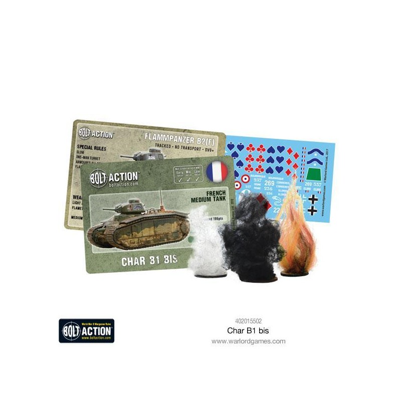 Following France's capitulation, the German military captured 161 Char B1 bis tanks. Many were put back into service as Panzerkampfwagen B-2 740 (f), and several were converted into flamethrower variants. This kit allows you to build either a French or German gun tank, or one of two German flammpanzer versions. It includes one resin and metal Char B1 bis tank, Bolt Action stat cards, a full-colour decal sheet, vehicle damage markers, and an order dice. Models are supplied unassembled and unpainted.