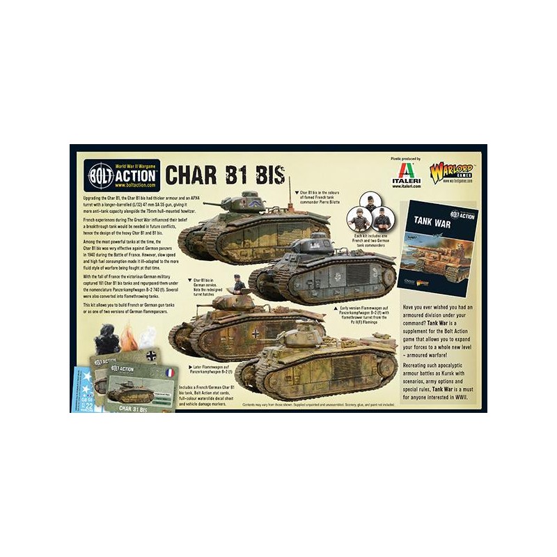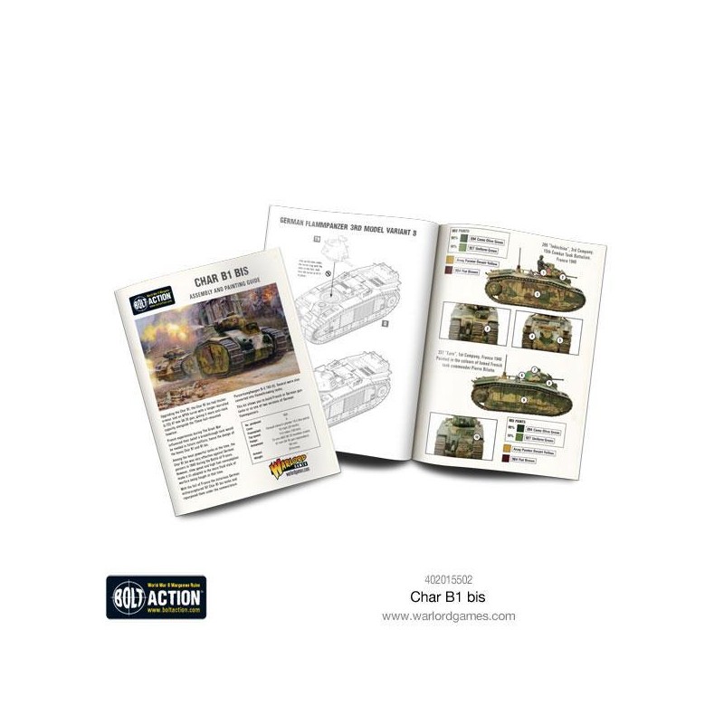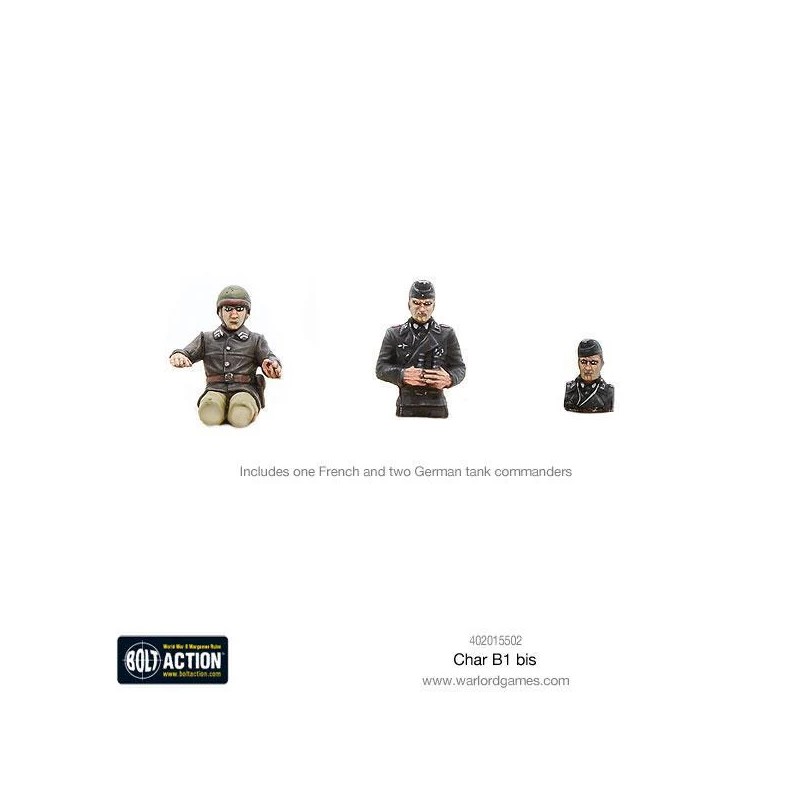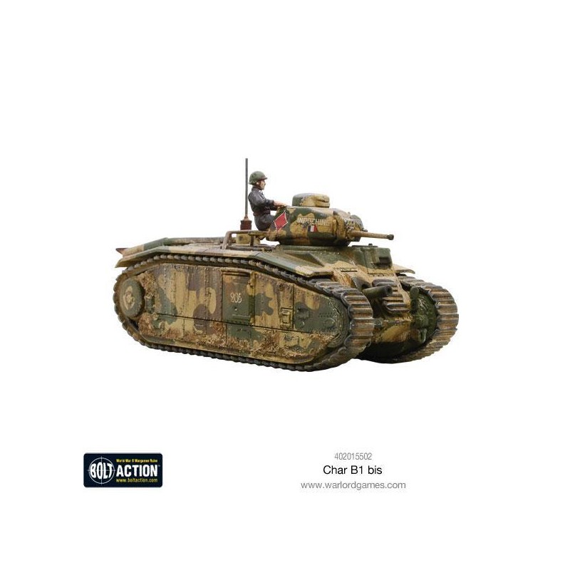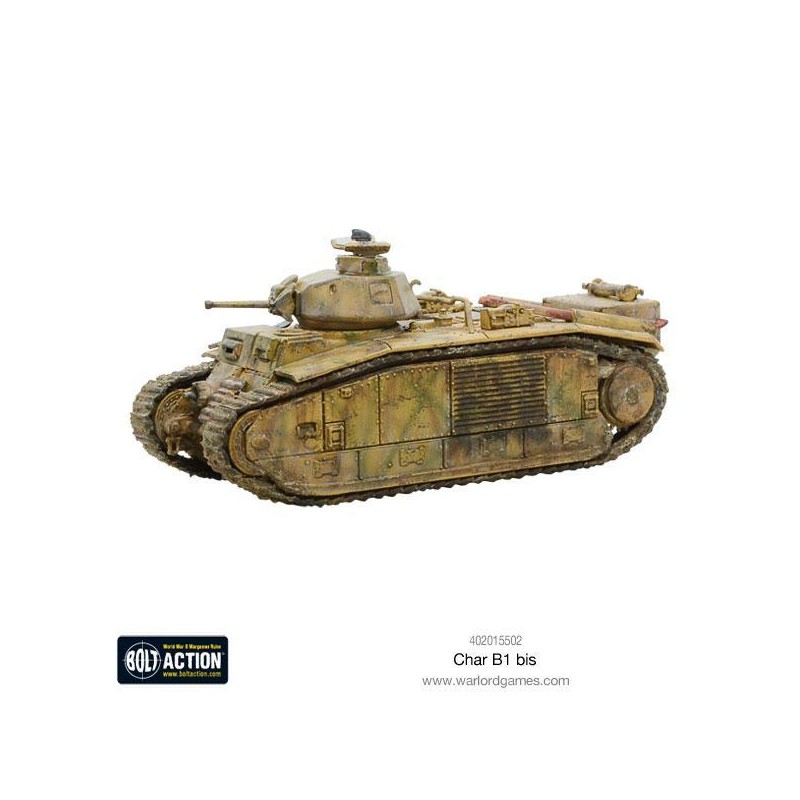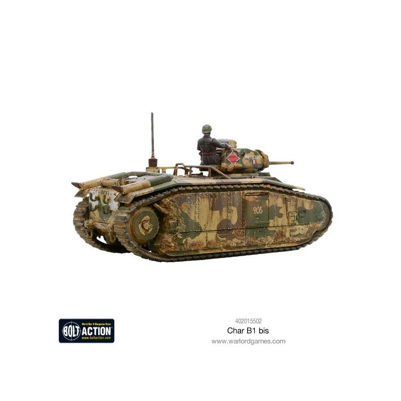 Following France's capitulation, the German military captured 161 Char B1 bis tanks. Many were put back into service as Panzerkampfwagen B-2 740 (f), and several were converted into flamethrower variants. This kit allows you to build either a French or German gun tank, or one of two German flammpanzer versions. It includes one resin and metal Char B1 bis tank, Bolt Action stat cards, a full-colour decal sheet, vehicle damage markers, and an order dice. Models are supplied unassembled and unpainted.