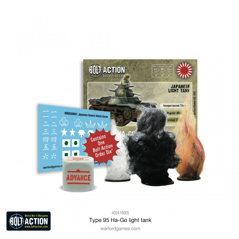 This kit includes one resin and metal Type 95 Ha-Go light tank, a Bolt Action stat card, vehicle damage markers, a full-color decal sheet, and one Bolt Action Order dice. Whether you're building a historical collection or expanding your tabletop army, the Ha-Go is a must-have addition for any fan of the Pacific theater. Model is supplied unassembled and unpainted.