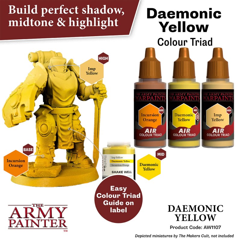 The Warpaints Air range is based on an innovative triad system: each Warpaints Acrylics colour is combined with a Base shade and a Lightening shade. This simplifies highlighting and zenith shading, making army painting quicker and more harmonious.