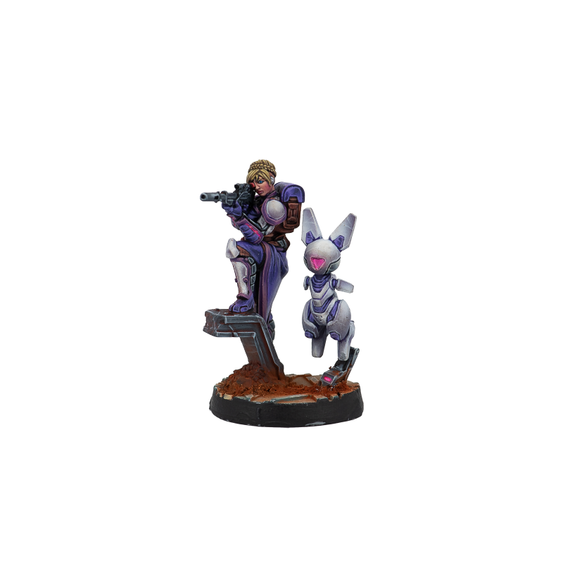 This box contains 2 figures (on a single S2 base): Atalanta equipped with her MULTI sniper rifle and her TinBot. If you're looking for a sniper to bolster your Steel Phalanx force, Atalanta is the perfect choice.