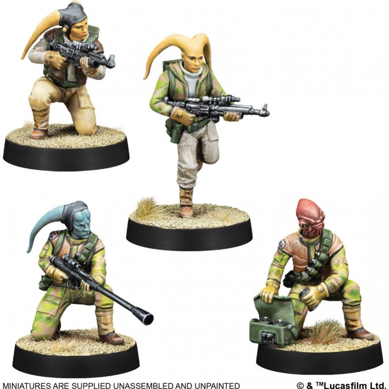 The box includes everything needed to deploy this unit in your games: six cards, a token sheet, and a rules leaflet. A Star Wars Legion core set is required to play. Miniatures are supplied unpainted and require assembly, offering hobbyists the opportunity to craft a personalized Rebel strike team.