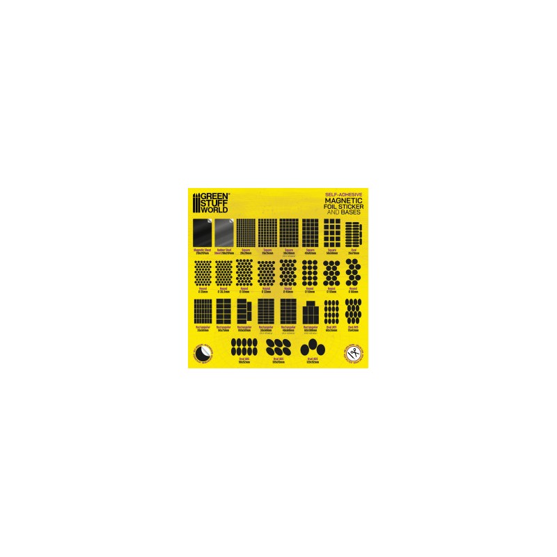 Flexible, self-adhesive magnetic sheets are a quick and practical solution for magnetising your wargame units, without drilling or gluing magnets. Available in a variety of shapes - square, rectangular, round or oval - as well as full sheets, they can be easily cut to size with scissors or a box cutter to suit your needs.