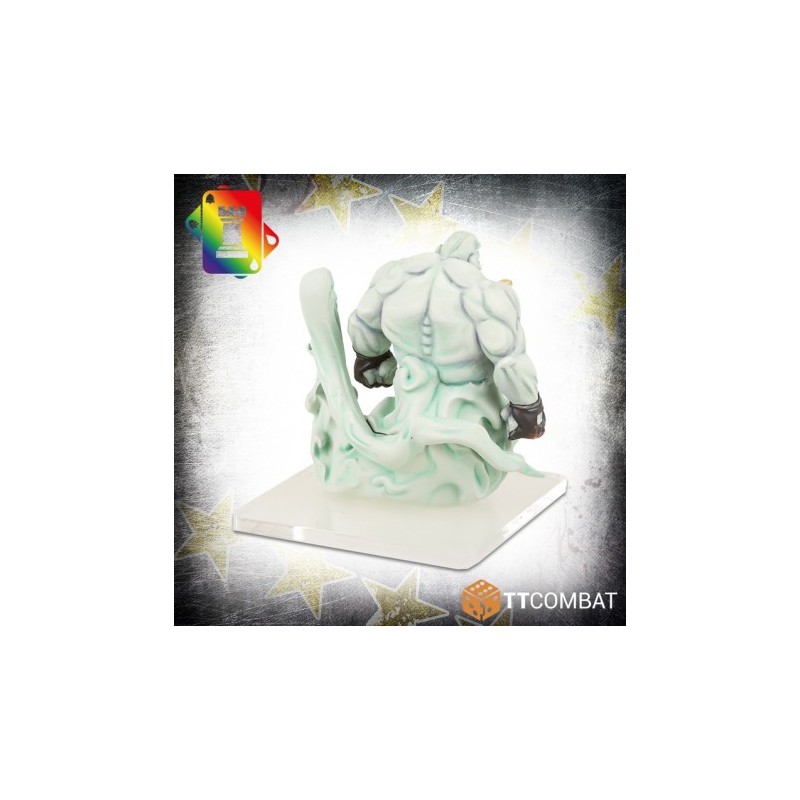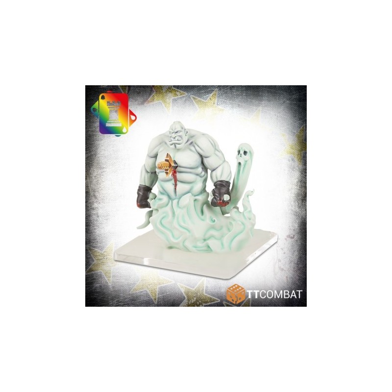 As a spectral entity, Brock cannot be pinned, nor can he pin others—a tradeoff for his ghostly nature. Still, he’s a powerful and elusive presence in the ring, difficult to control and full of surprise plays. His “Crowd Please” ability may raise eyebrows: in a ghostly knife fight, Brock pulls the blade from his chest to remove a gold stamina from an enemy wrestler. This rare figure adds a supernatural edge to any team and comes with one detailed miniature to bring Brock Spectre’s eerie presence to life in your matches.