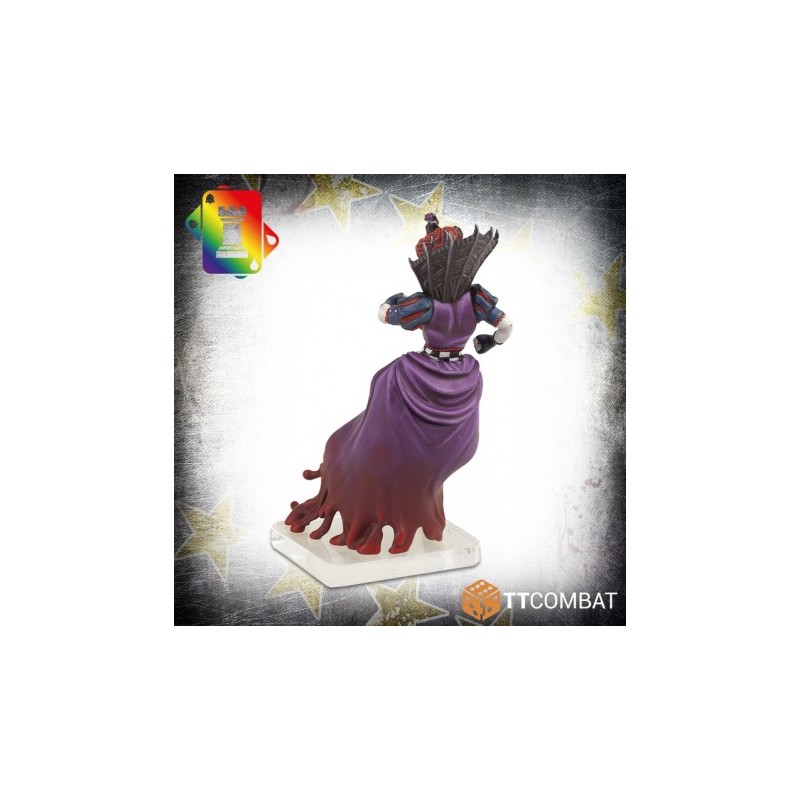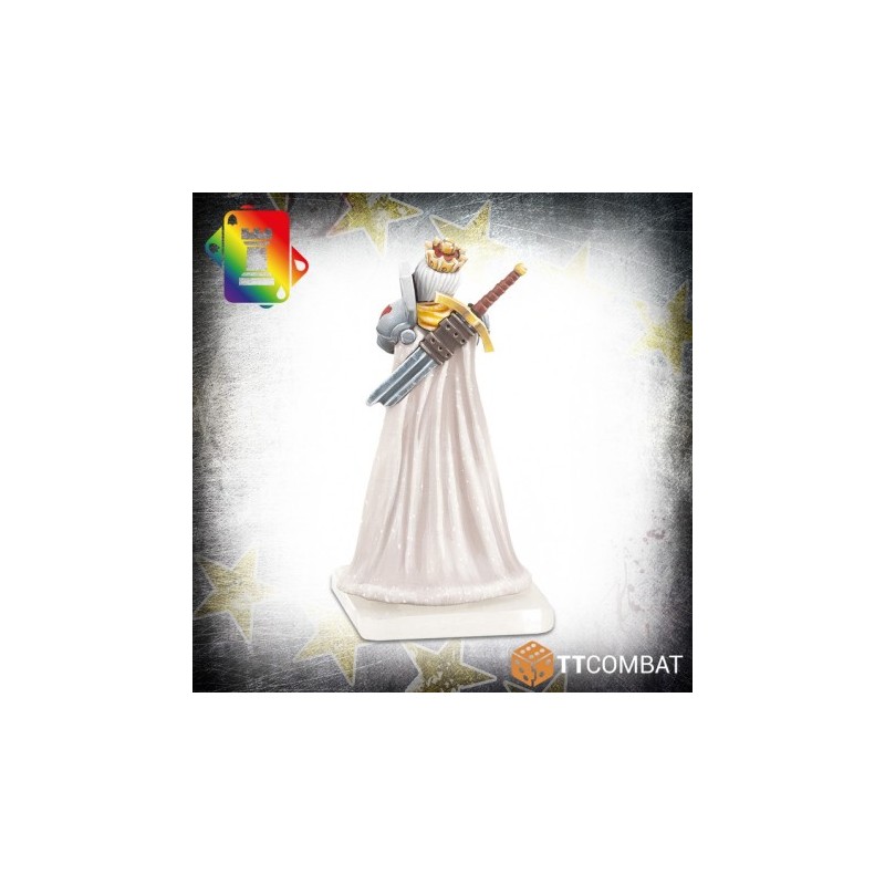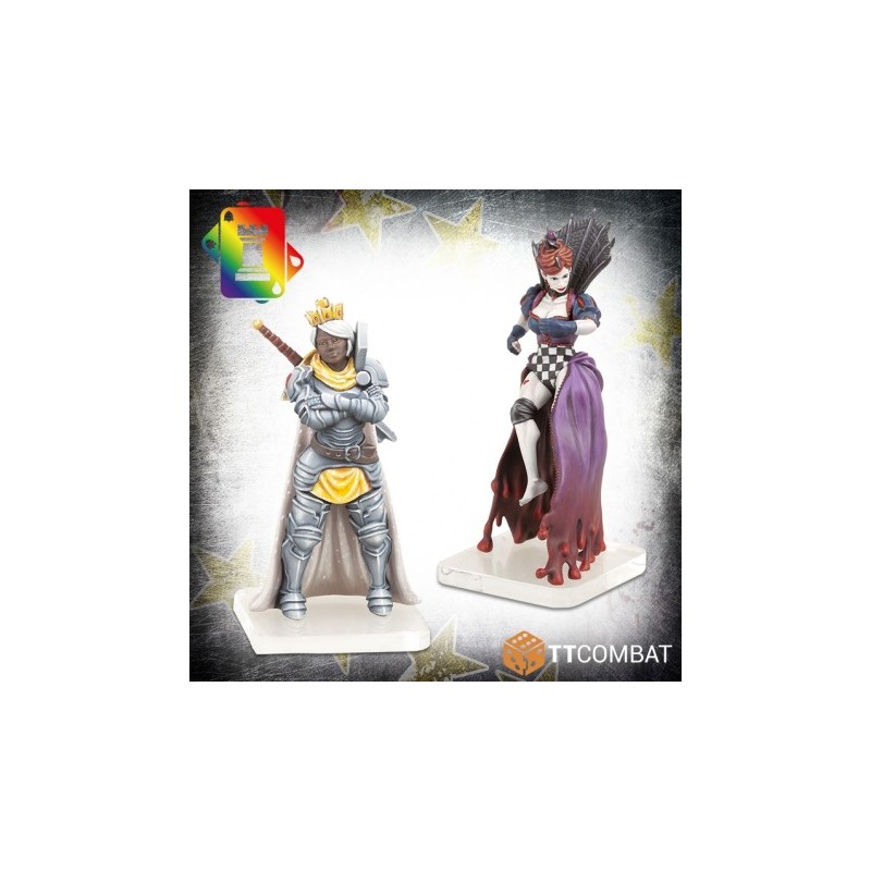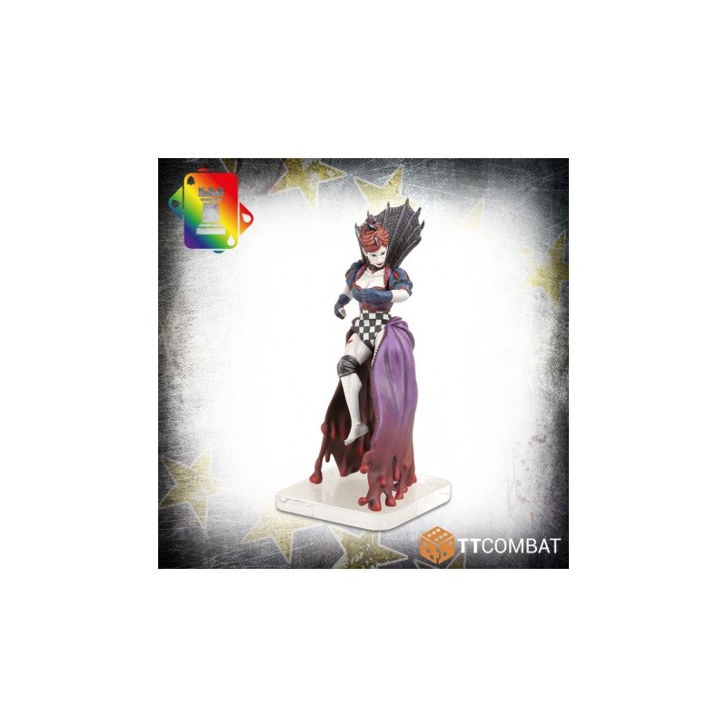 The Queen of Hearts functions like a runaway train. She can only move in a straight line until she collides with an opponent, creating sudden and unexpected impact plays. Her Exsanguination attack deals damage, lowers the enemy’s AP, and applies a counter-Bleed effect. She then uses Blood Siphon to regenerate stamina, turning her opponents’ suffering into strength. Her Flying Neckbreaker is a Turnbuckle move with 2 Square Range that deals a solid hit and reduces the target’s MP. This set includes two finely crafted miniatures, perfect for players who enjoy strategic synergy and dramatic momentum on the battlefield.