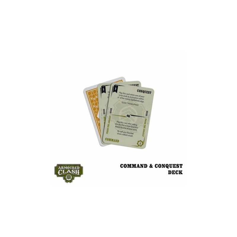 In Armoured Clash games, these faction-specific cards allow players to issue commands, pursue objectives, and score victory points. In short, they are the key to victory for any general. But use them wisely… your enemy has the same tools at their disposal.