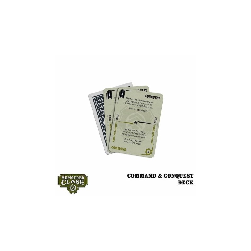 In Armoured Clash games, these faction-specific cards allow players to issue orders, pursue conquests, and score victory points. In short, they are the key to victory for any commander. But use them wisely—your opponent has access to the same tools…
