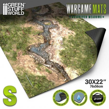 Green Stuff World neoprene mats, measuring 22 x 30 inches (56 x 76 cm), provide a premium gaming surface for miniature enthusiasts seeking practicality and immersion. Their non-slip neoprene rubber backing ensures excellent grip on any surface, while the soft printed fabric protects miniatures and reduces dice noise. Flexible and durable, these mats roll up easily for convenient storage and transport, laying perfectly flat when unrolled with no creases or waves.