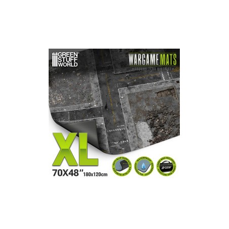 Printed in high resolution, the mat showcases stunning realism: cracked surfaces, scattered debris, and natural shadows add depth without compromising gameplay. The top-down artwork ensures clear readability, supporting tactical decisions like movement, cover, and line of sight. Every visual element is carefully placed to enhance immersion while remaining unobtrusive. Whether you're viewing the table from the side or above, the mat offers a visually rich yet practical playing surface.