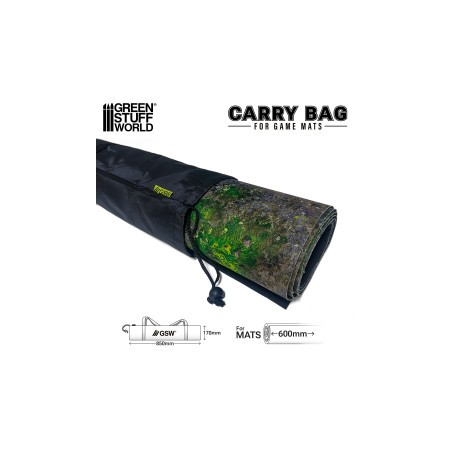 Green Stuff World offers this bag in two sizes to suit different needs: a compact 60 cm version for smaller mats and a longer 122 cm version for standard or multiple mats. The 60 cm model is a must-have for gamers looking to organize, carry, and safeguard their gaming surfaces with ease and reliability.