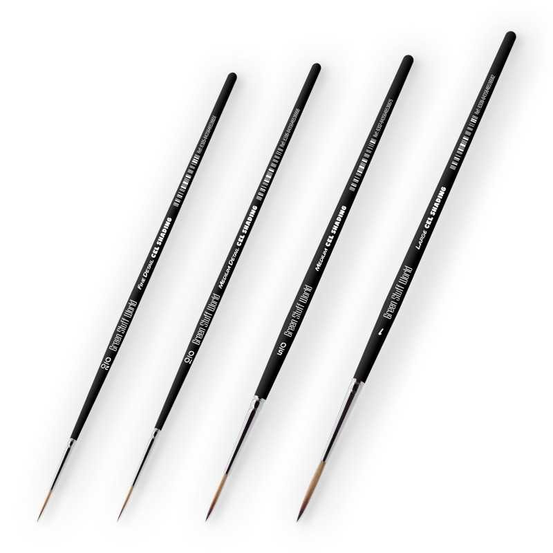 Green Stuff World’s Cel Shading brushes are specifically designed to replicate the clean, stylized look of 2D illustrations on 3D figures. Perfect for flat shading techniques inspired by Japanese animation, these brushes allow you to apply bold blocks of color without blending or soft transitions. The result is a sharp, expressive finish that mimics the cel shading found in anime and manga visuals.