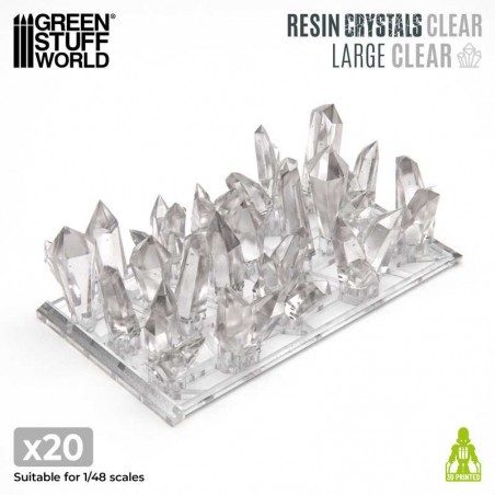 Add a striking visual element to your miniatures with this set of transparent resin crystals, specially designed to enhance figure bases, dioramas, and scenic pieces. Crafted from high-quality 3D resin, these crystals feature crisp details and a solid structure, making them perfect for adding realism and texture to your projects. Each crystal is coated with epoxy varnish for a long-lasting glossy finish and outstanding resistance to scratches, impacts, and frequent handling.