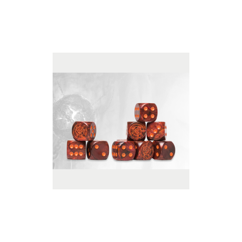 Each 16 mm resin die features the Dweghom faction symbol in place of the number one, adding a bold thematic element to your tabletop battles. Perfect for wargames, board games, or role-playing campaigns, this dice set enhances immersion while keeping your rolls clear and consistent.
