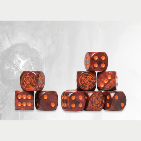 Crafted from high-quality resin, these dice are built to withstand frequent play. Their standard size makes them compatible with any game using six-sided dice. Whether you're a loyal Dweghom commander or a fan of stone-and-fire aesthetics, this set is a must-have addition to your gaming arsenal.