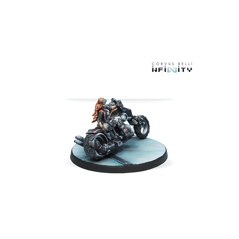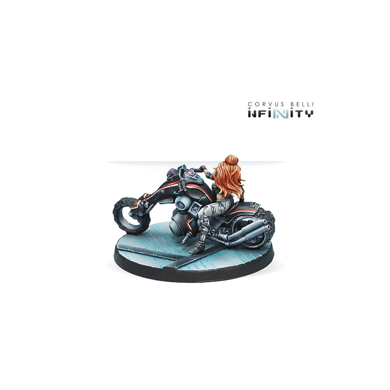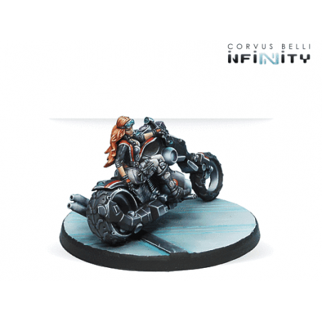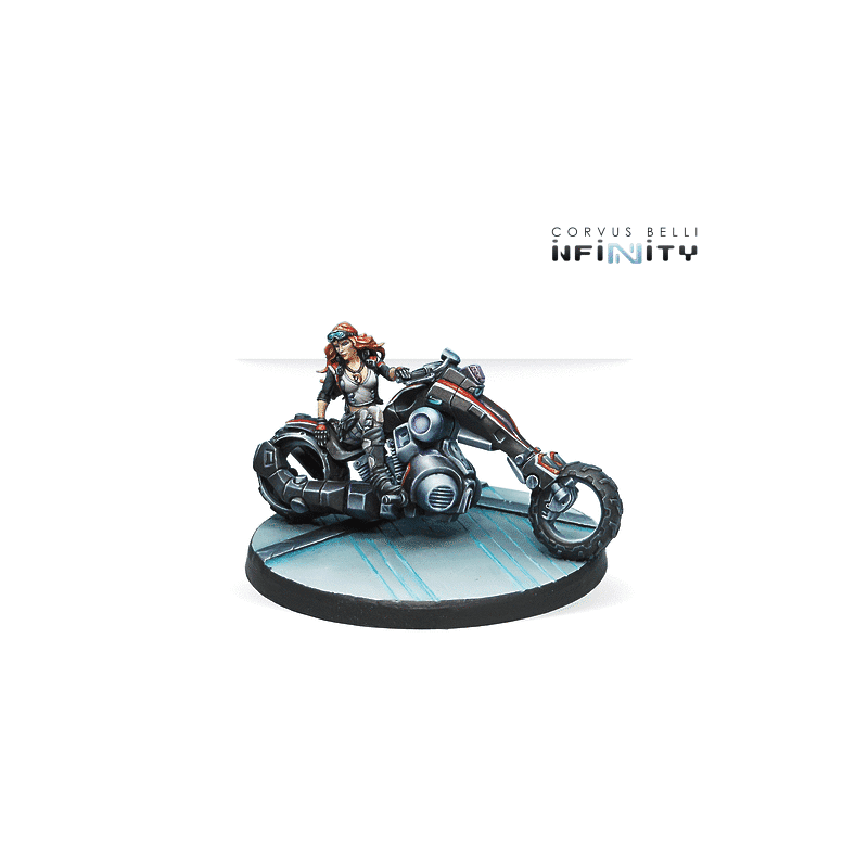 Infinity is back with a fresh take on Penthesilea, the iconic Steel Phalanx character from ALEPH. This new edition features her sporting a stylish leather jacket while riding a Kum chopper, capturing the essence of classic Easy Rider aesthetics. Originally unveiled as a special edition at Indy GenCon 2014, Penthesilea is now available as a standard release for all collectors and players.