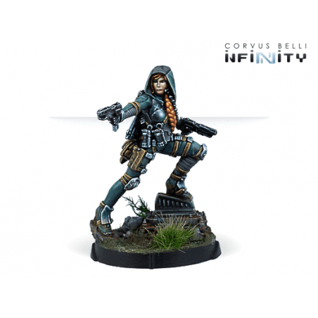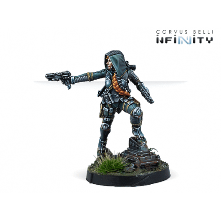Uxía is now recognized as one of Infinity’s most skilled and deadly sharpshooters. Her expertise in covert operations and swift combat make her a formidable ally on the battlefield. Armed with her assault pistols, she dispatches enemies with precision and efficiency.