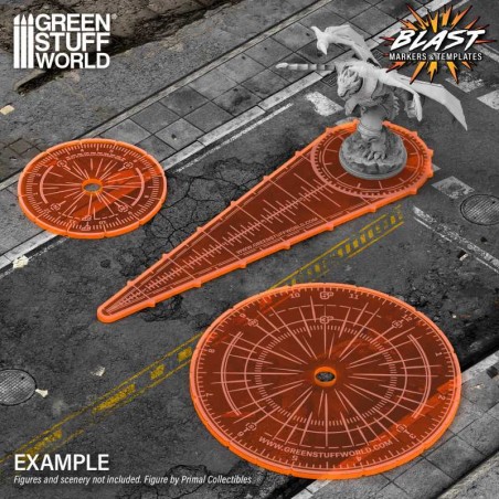 Green Stuff World’s explosion template set brings together all the essential tools needed to accurately measure area effects on your fantastic battlefields. Made from 3 mm thick fluorescent acrylic and laser-cut for precision, these templates stand out with exceptional visibility even in low light conditions. The engraved markings are permanent and will never fade, ensuring long-lasting reliability throughout your games.