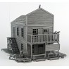 The set includes all necessary components to assemble and position the building as desired. With this kit, you can seamlessly integrate Aces and Eights Saloon into your miniature town, enriching your scenarios with a functional and visually appealing location. Ideal for depicting downtime, confrontations, or character interactions, this versatile building is an essential addition to any gaming table, adding charm, realism, and the vibrant ambiance of the Wild West.
