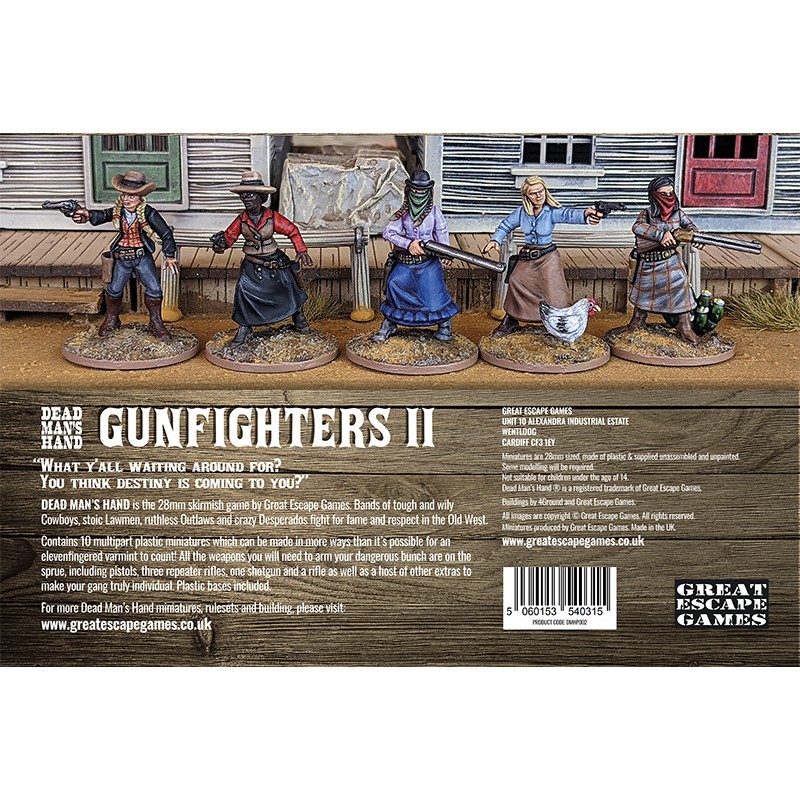 "What y'all waiting around for? You think destiny is coming to you?" Dead Man’s Hand is a 28mm skirmish game by Great Escape Games, where tough and cunning Cowboys, stoic Lawmen, ruthless Outlaws, and unpredictable Desperados compete for fame and respect in the Wild West. Each game combines strategy, fast-paced duels, and unexpected twists, providing a dynamic and immersive experience for miniature enthusiasts.